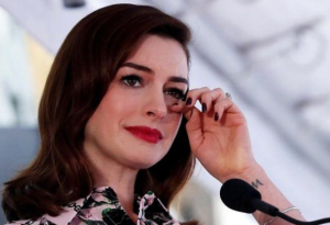 安妮·海瑟薇留名好莱坞星光大道 情绪激动落泪