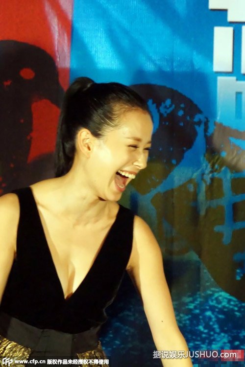 2015-05-18 13:01 小陈 八卦10月15日,电影《蓝色骨头》发布会。主创崔健、倪虹洁、尹昉现身武汉。倪虹洁穿一身黑色大V露胸惊艳全场,估计是V开得太低,倪虹洁时不时观看自己胸部。