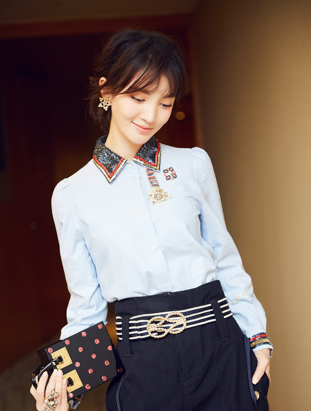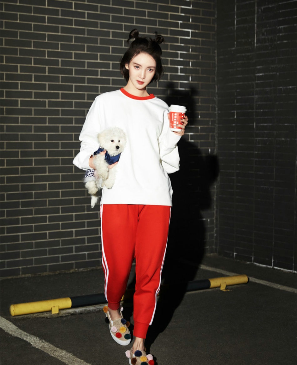 金晨丸子头时尚俏皮写真