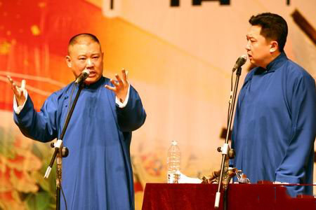 1997年-1998年间,于谦与郭德纲在几次演出场合中相识。 2000年,于谦和郭德纲在北京某郊区露天广场的舞台上,表演了对口相声《拴娃娃》。这次意外的合作却让二人“毫不意外”地对彼此生出强烈欣赏。2002年起,于谦不时与在小剧场演出的郭德纲合作表演相声。2003年,郭德纲与于谦合作相声《你好北京》,在北京相声小品邀请赛上获得了组委会特别奖。